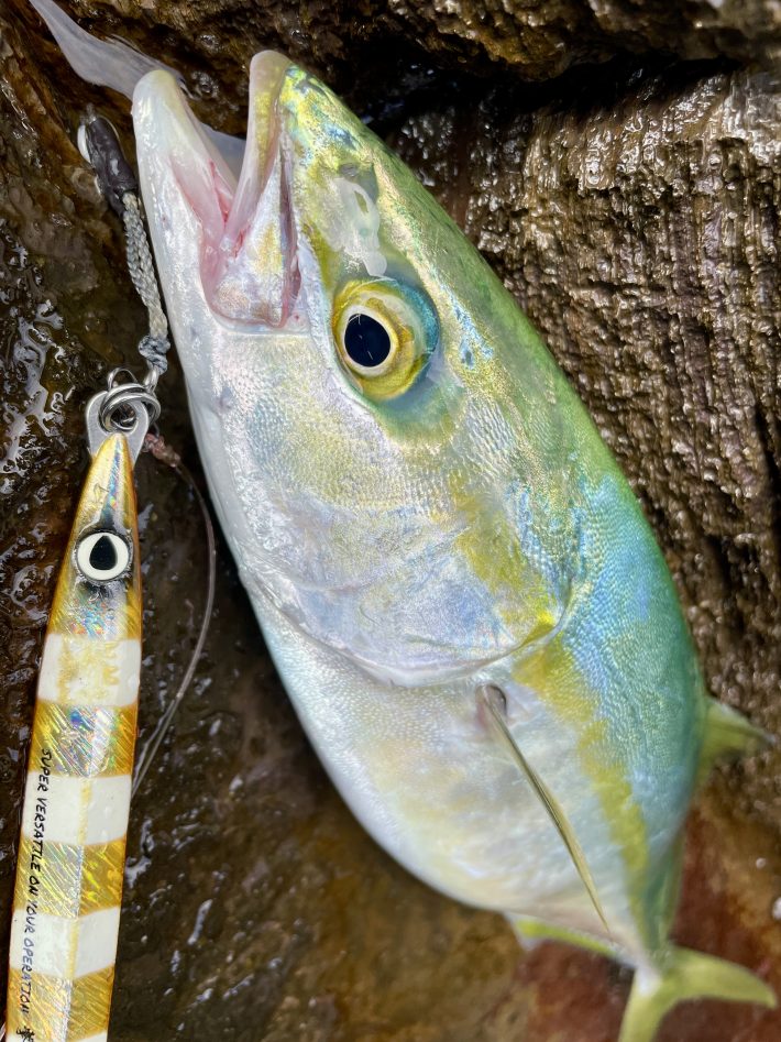 リーダー組み直して、40cmほどのツバス。ギリ食べれる。