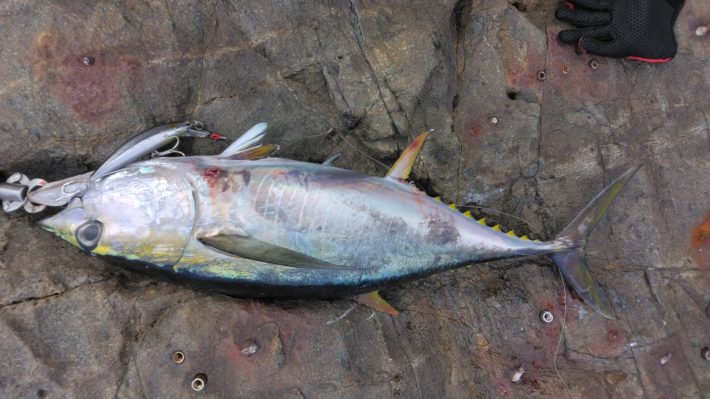 キハダ狙いに切り替えて暗い中投げ倒しましたが