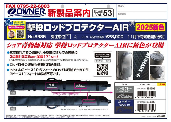 撃投ロッドプロテクターAIRの新色が11月下旬、