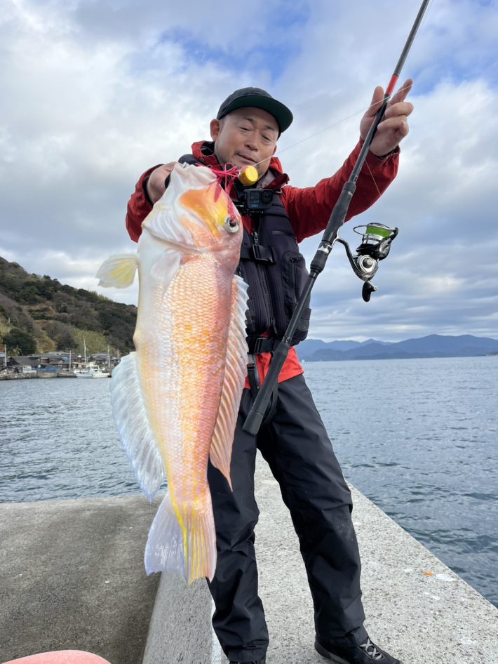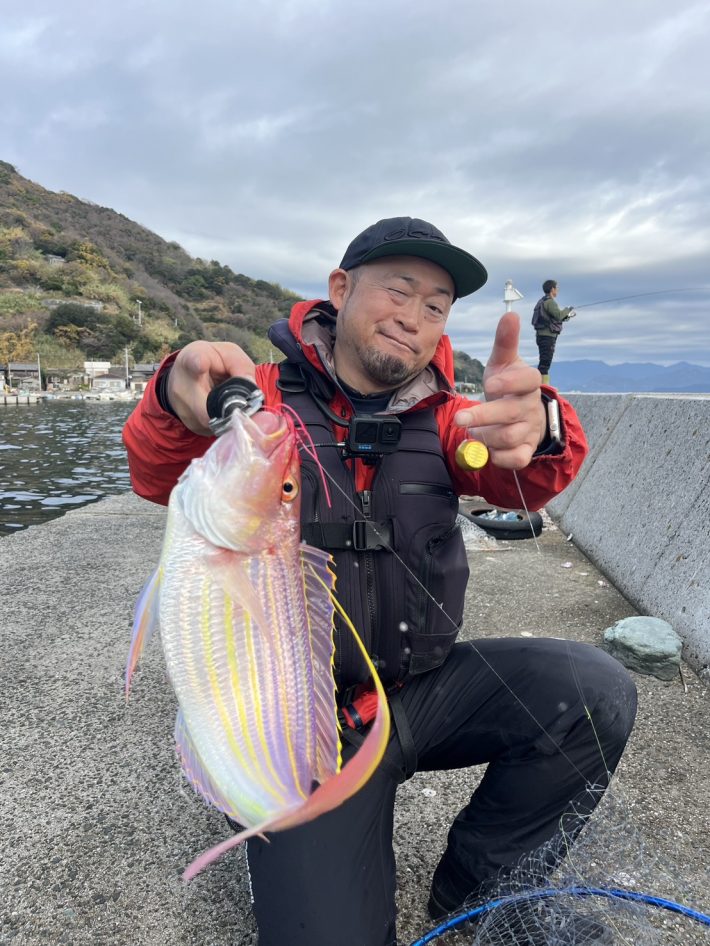 朝からの2時間でハマチ~メジロを全員キャッチし、ショアからの鯛ラバではアカアマダイとイトヨリ、マダイもキャッチ。