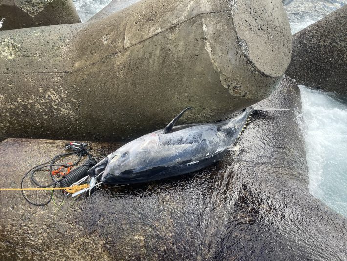 さらにギャフをもう一本掛け、釣友2人と3人で引き上げ