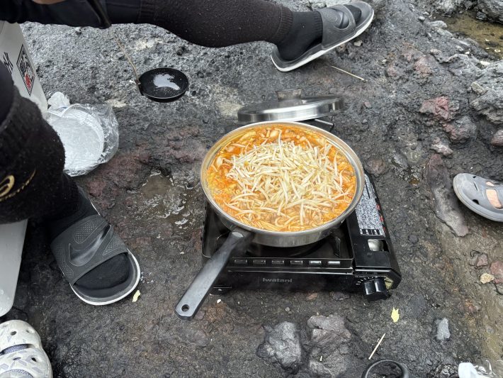磯で食べたキムチ鍋は最高でした♪